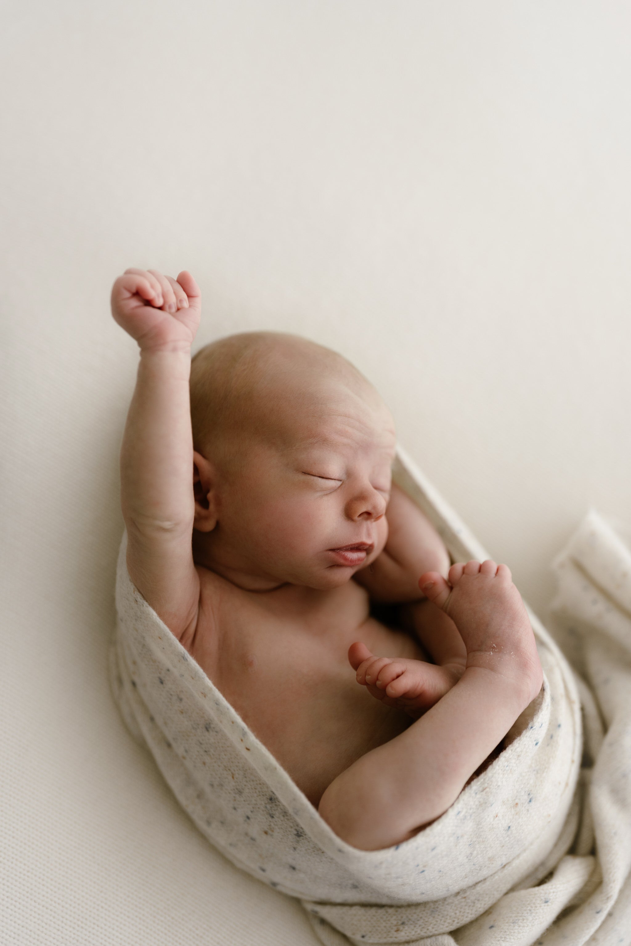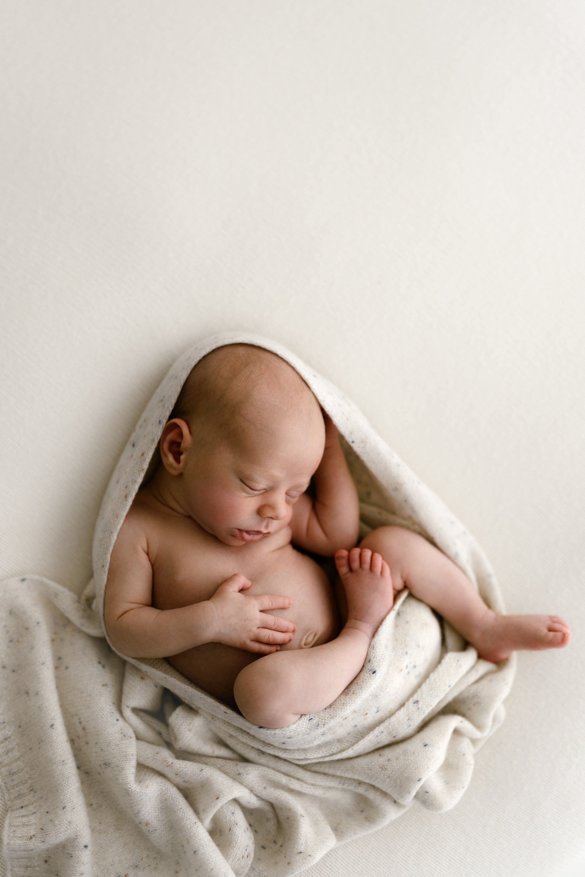 A beautiful long, narrow, speckled wool wrap. Cosy, lightweight with little to no fluff. Perfect for creative newborn wrapping and posing easy. Colour ivory with multi-coloured speckle.